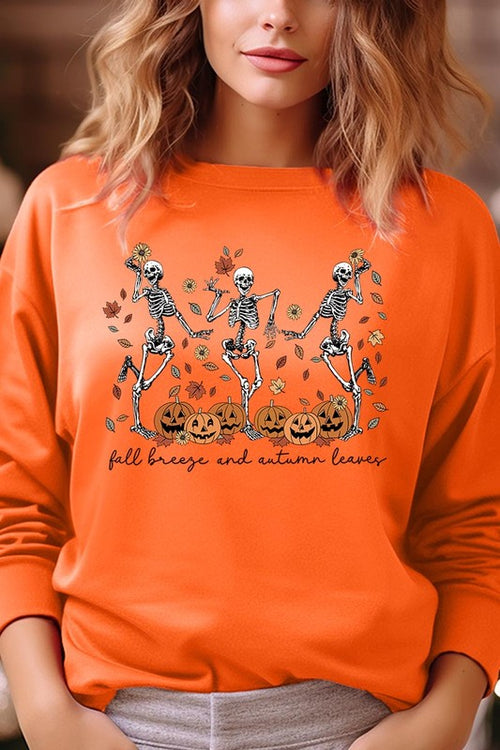 Fall Breeze Skeleton Graphic Fleece Sweatshirts