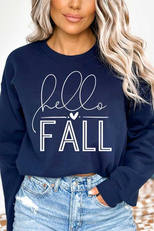 Hello Fall Tiny Heart Graphic Sweatshirt