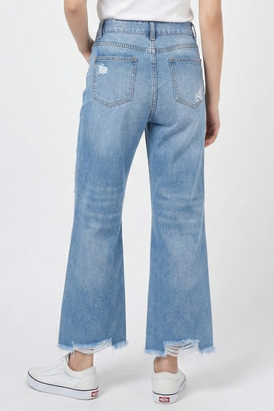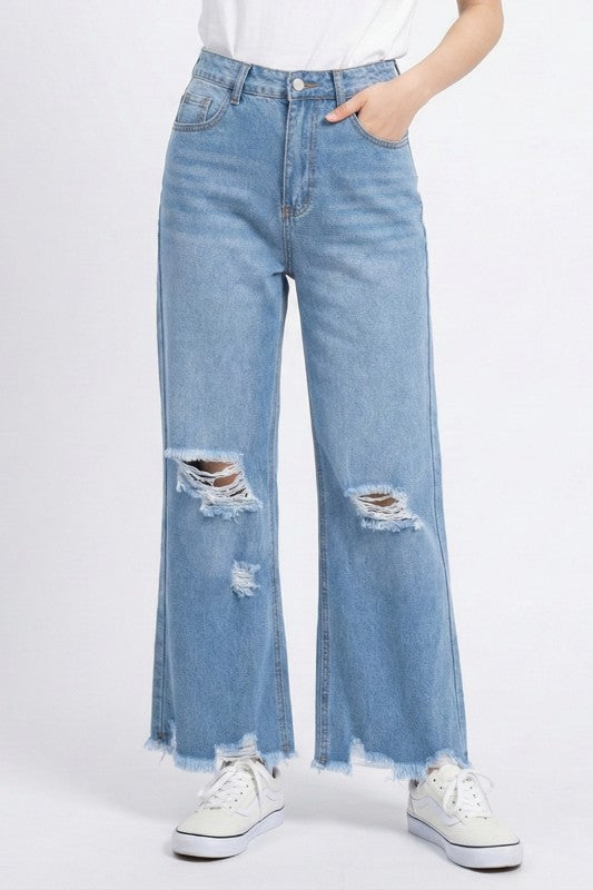 Style: Vintage-meets-modern distressed wide-leg jeans