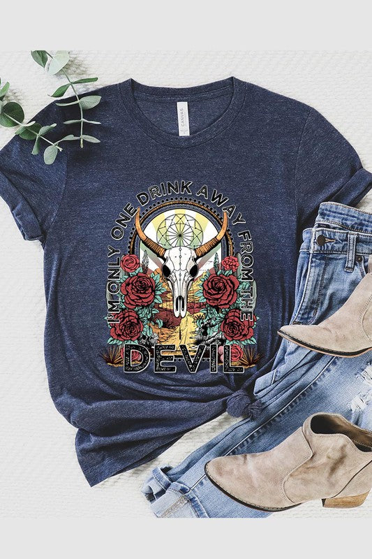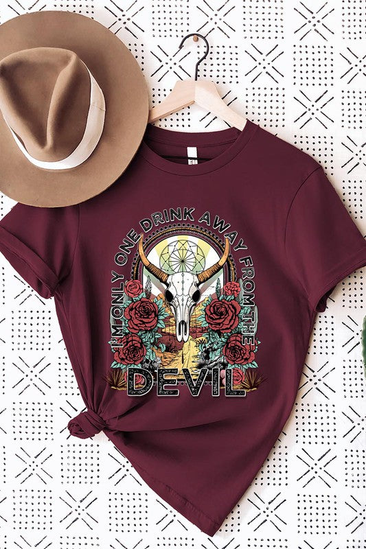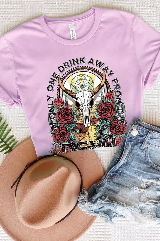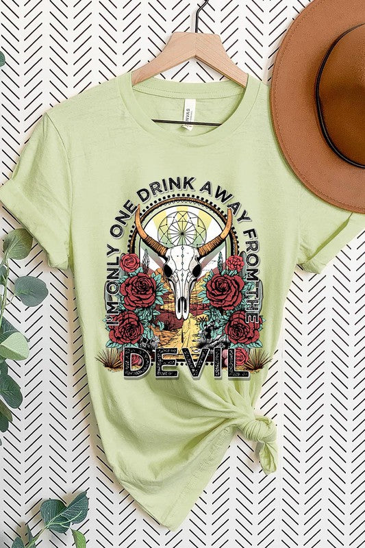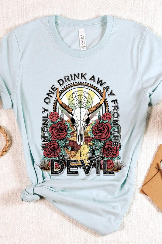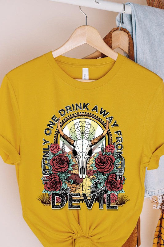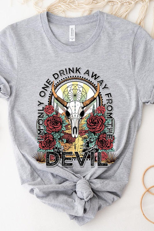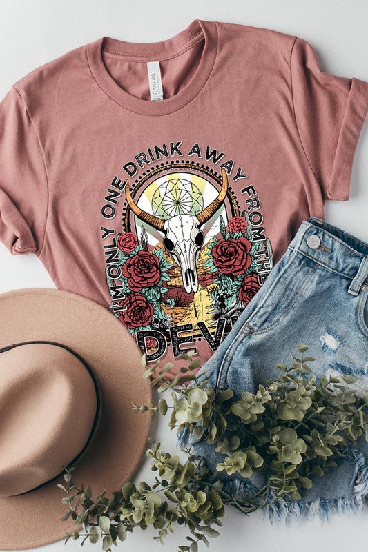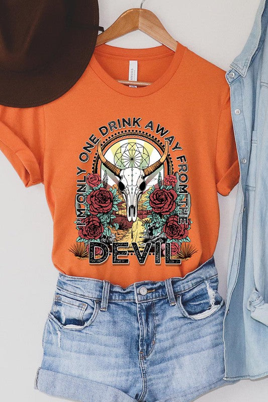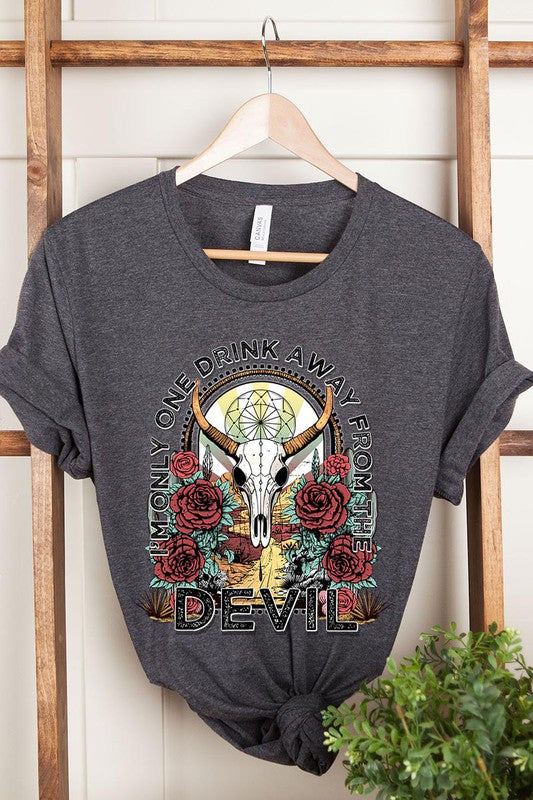 I'M ONLY ONE DRINK AWAY FROM THE DEVIL,BULL SKULL UNISEX SHORT SLEEVE,GRAPHIC TEE,GRAPHIC TSHIRTS,TSHIRTS,TEES