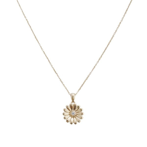 A playful pendant of a blooming daisy with the tiniest crystal dot in its center bud. We love wearing this stunner solo or alongside another chain-linked friend. Length: adjustable 18" - 21". Charm: 12mm.
