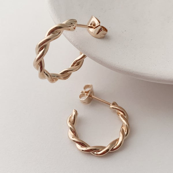 Thick, twisted hoops in just the right size. Comfortable, lightweight, and stylish - what more could you ask for? Hoops measure 3mm thick and 19mm tall.