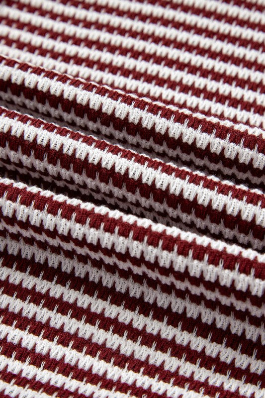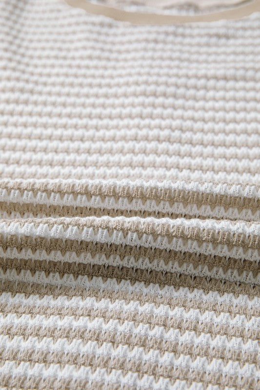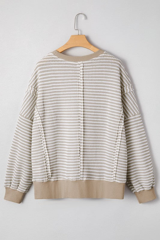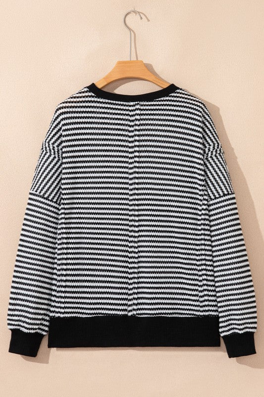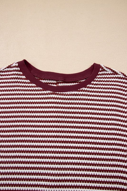 Sarah Stripe Ribbed Trim Drop Shoulder Top