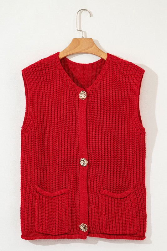 Stacey Textured Knit Buttoned Sweater Vest