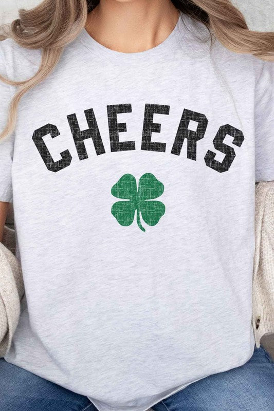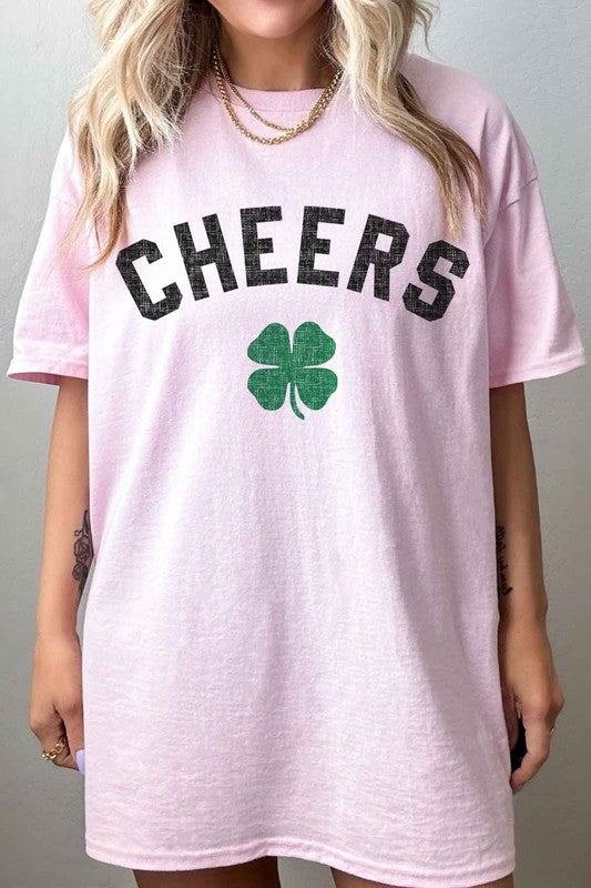 The "Cheers St. Patrick's" oversized tee is a fun and festive addition to any St. Patrick's Day wardrobe. Its bold green color and playful design featuring shamrocks and beer mugs evoke the spirit of the holiday. Whether you're hitting the pub or celebrating at home, this tee is sure to bring luck and cheer to your festivities.