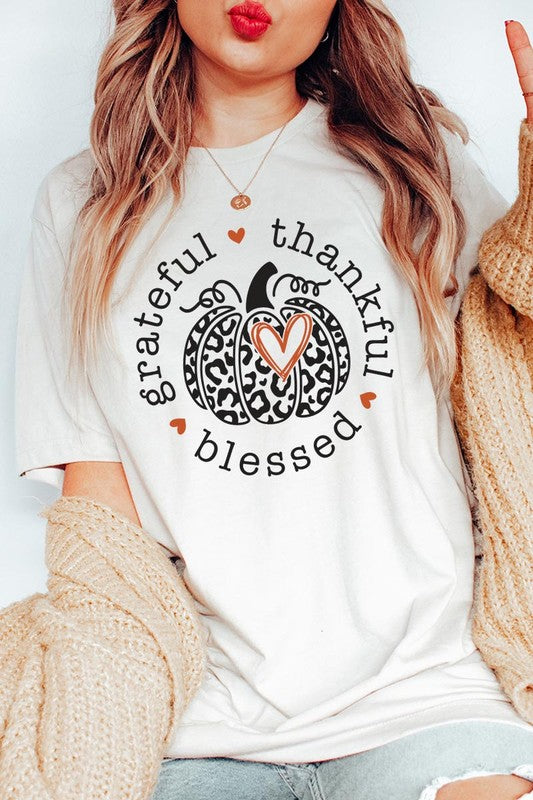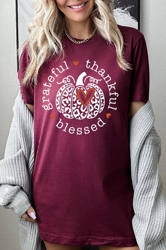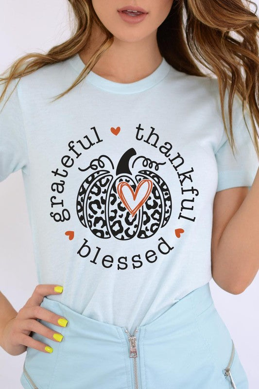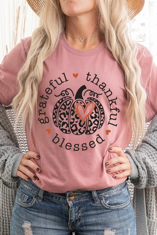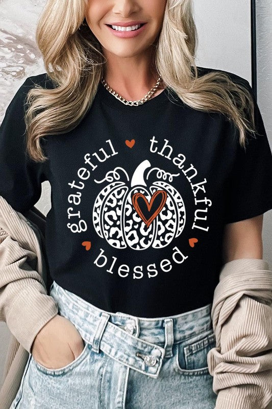 GRATEFUL,THANKFUL,BLESSED,PUMPKIN,THANKSGIVING UNISEX SHORT SLEEVE,GRAPHIC TEE,GRAPHIC TSHIRTS,TSHIRTS,TEES