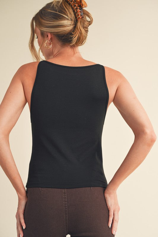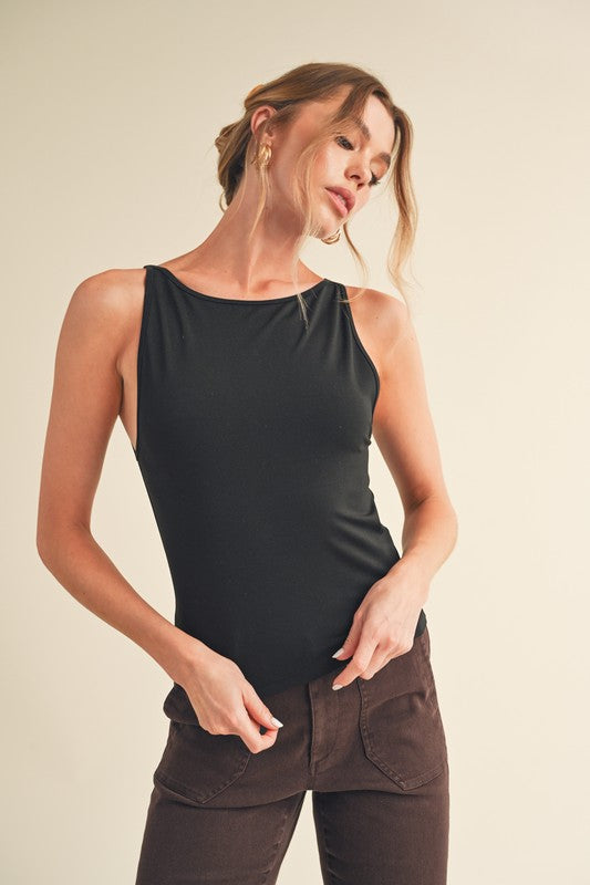 Elevate your essentials with Rodi high-neck tank. The figure-hugging silhouette and soft fabric blend seamlessly for a chic and comfortable look. A versatile piece that effortlessly combines style and comfort in your wardrobe essentials.